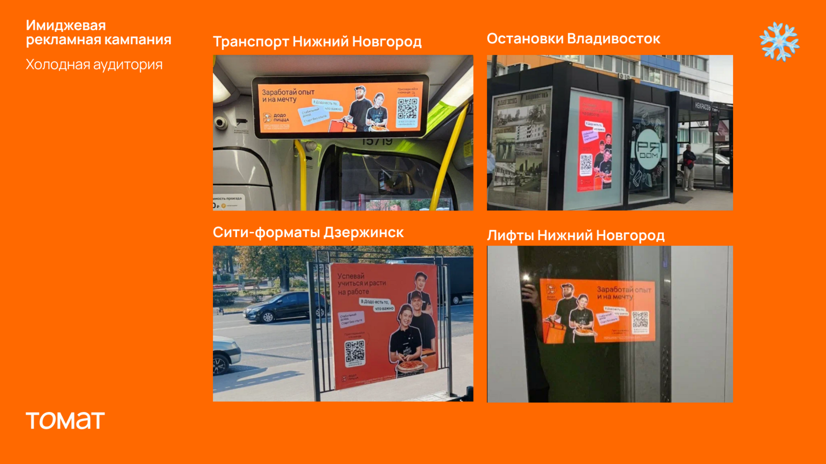В digital всё проще — можно измерить клики, переходы, конверсии. В оффлайне этого инструментария нет, но есть лайфхак — QR-коды и UTM-метки. Например, в проектах с «Додо» QR-код на наружной рекламе вёл на HR-сайт, где можно было оставить анкету. Так компания отслеживала, с каких носителей приходят заявки — с баннеров, билбордов или ситибордов.