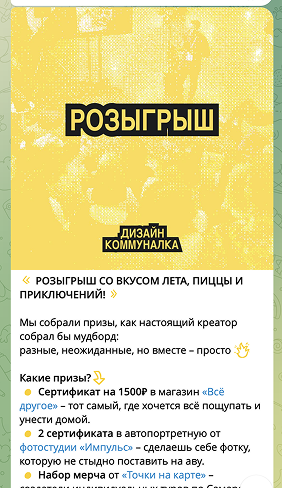Вот так выглядел макет розыгрыша. Мы подготовили несколько призов, участие было максимально простым — репост давал шанс выиграть. Этот формат отлично сработал на вовлеченность и рост охватов. В этом году мероприятие вышло на новый уровень: